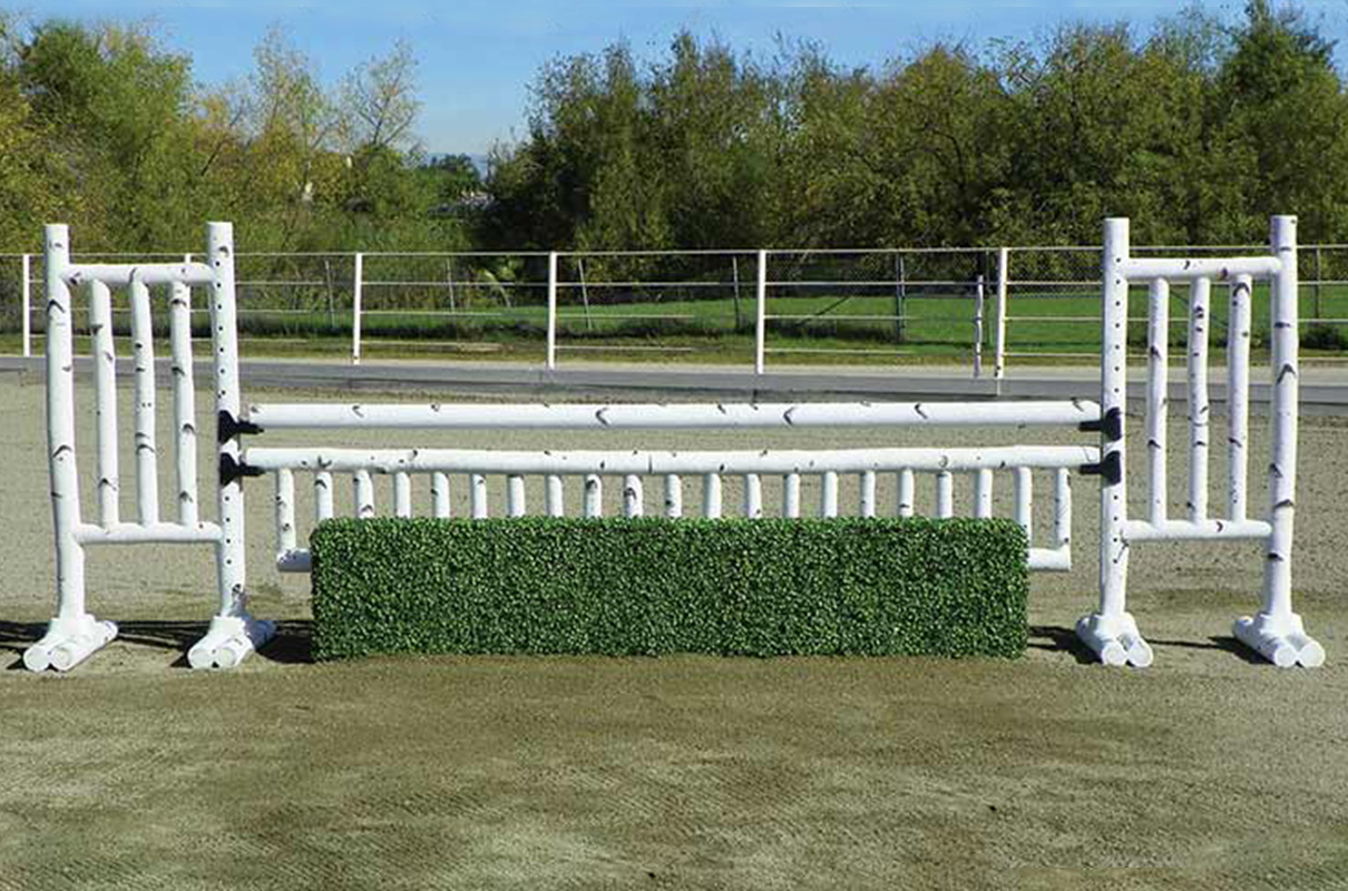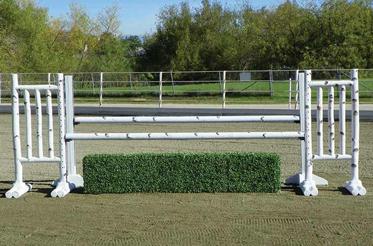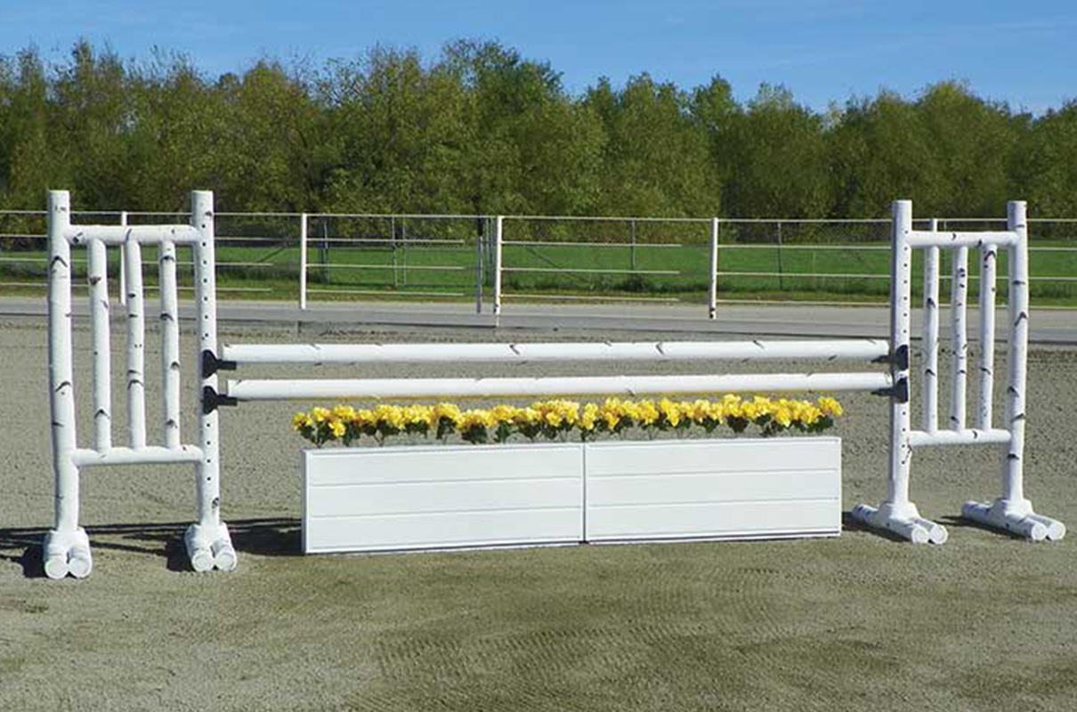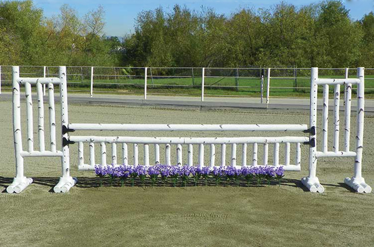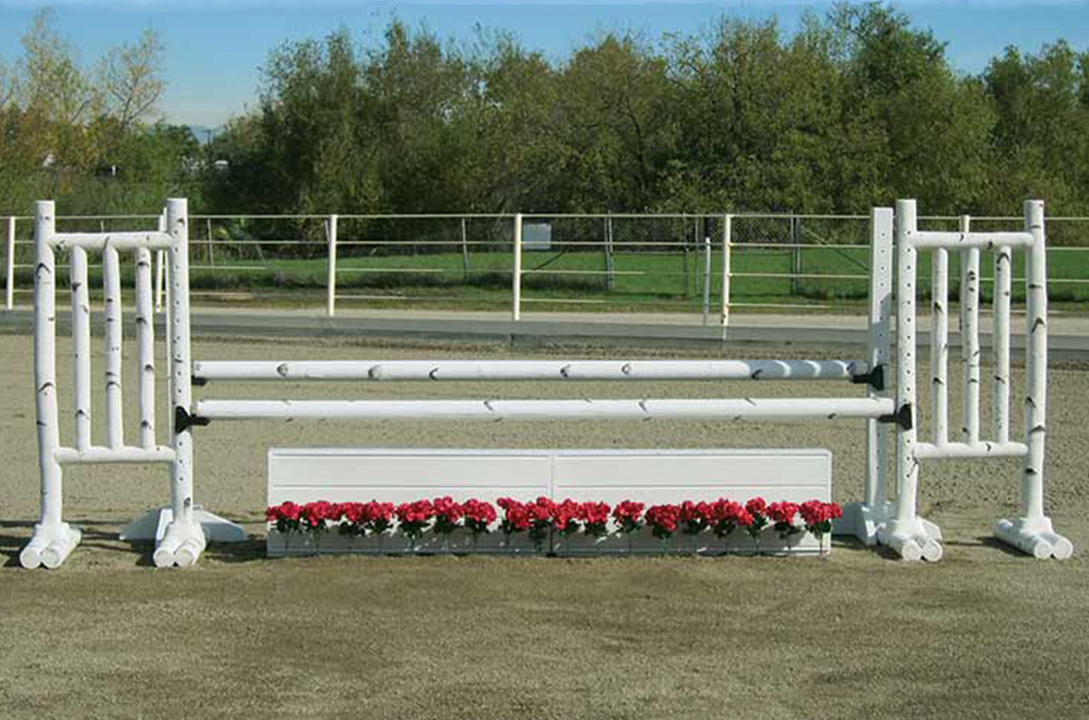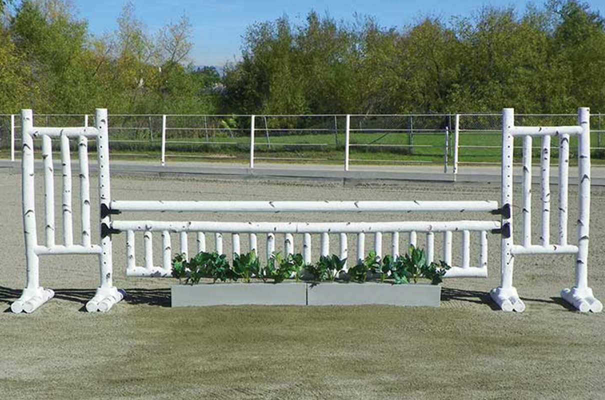 5′ Birch Jump Standards exceed expectations. These long lasting birch log jumps will continually revitalize your arena as if you cut fresh logs every spring. Birch Jump Standards have solid drilled pin holes for pinned jump cups. When Pinless Jump Cups are desired add our “Metal Keyhole Track” to the standards. Also available in 6′ size. The 6′ size has a recessed area to add Flowers or Greens to each wing.