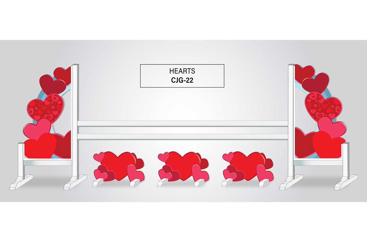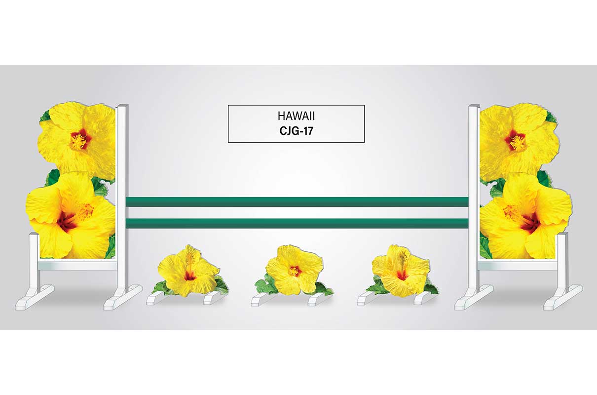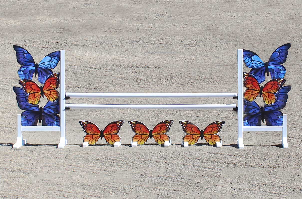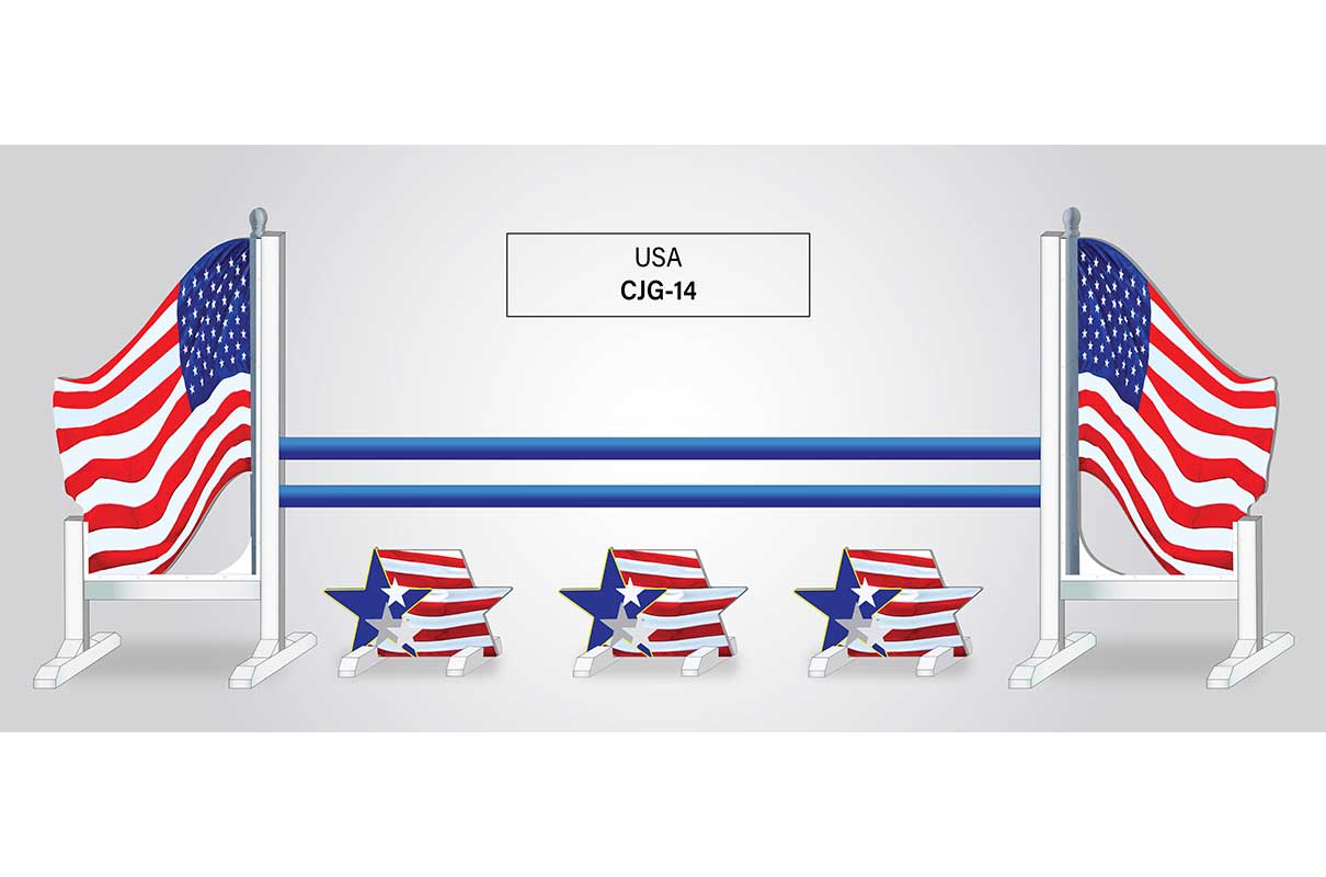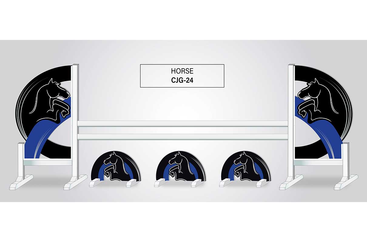 Make a statement with complete graphic jumps! You will be proud to feature Burlingham Sports Complete Graphic Jumps in your arena or show. Many designs and components to choose from. Use your imagination and personalize by choosing your graphics, pole colors and stripe patterns. Custom graphics available, please contact us for information. All jumps include Metal Keyhole Jump Track. Pinless Keyhole Jump Cups are required for these Graphics Jumps.