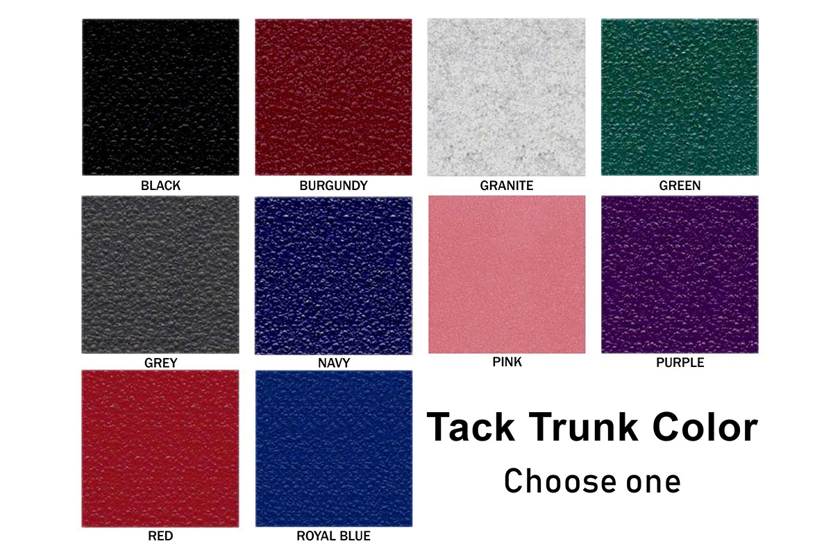 Each Deluxe Sport Tack Trunk is complete with Tote Tray, Removable Trunk Divider, Bandage Net, Wheels and Pull Handle. The strong lid features molded in handles. This sturdy design will provide years of use. The wheels and pull handle make it a breeze to pull across the stable or show grounds.