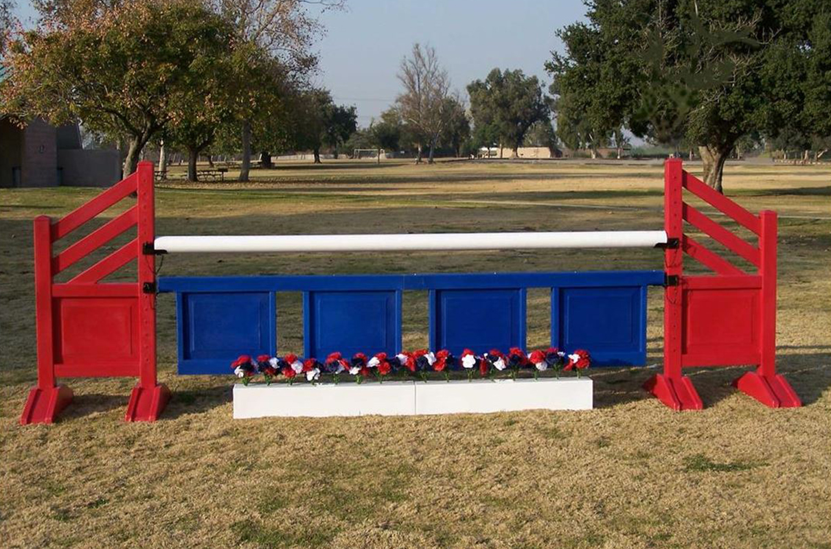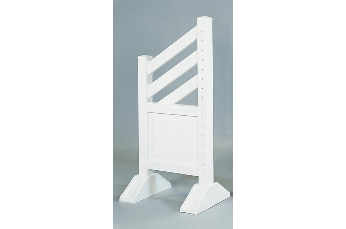 Diagonal Panel 5ft Solid Color Jump Standards are sold in pairs with plenty of features like heights marked from 1’3” to 4’9” and solid slide-through pinholes. The Jump Standards are molded in one piece and base feet can be filled with sand for added stability. Each Standard weighs 25 lbs. Comes with regular pinholes or upgrade to pin-less system.