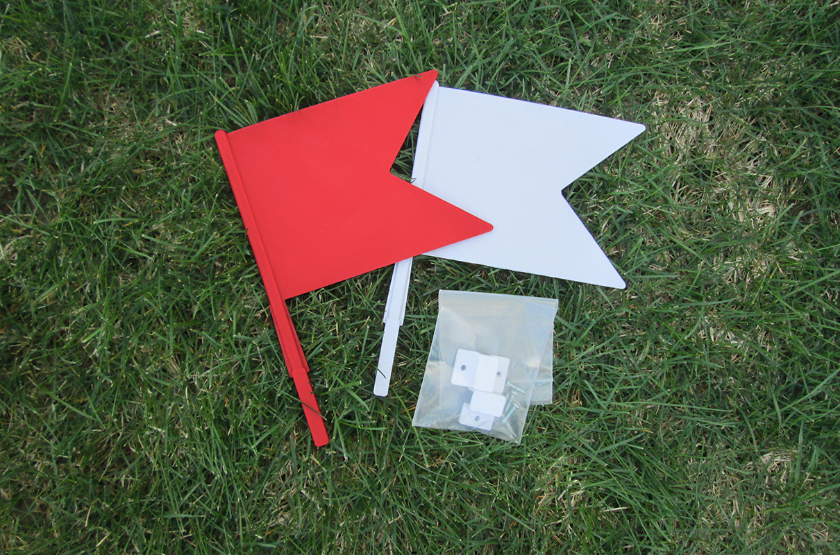 The 5-sided design of the Jump Flags are made with durable plastic that is impact resistant. Each set includes Red and White Flags, Mounting Clips and Screws. Easy to attach to any jump.