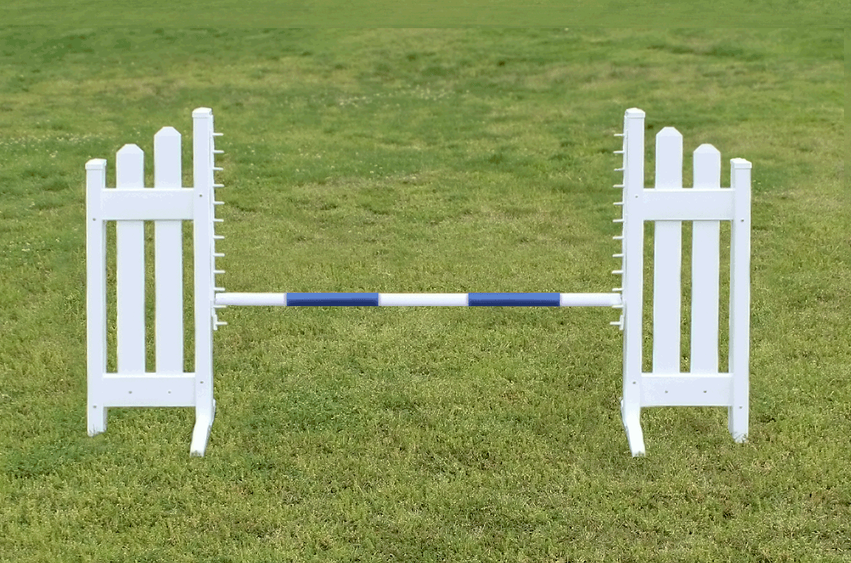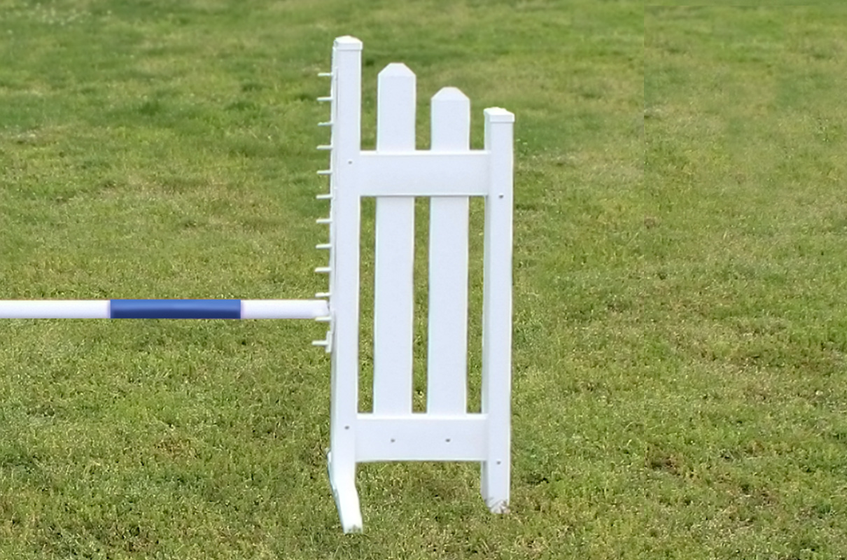 Kids of all ages will enjoy the Skinny Picket Jump Set! Built with our 100% UV-resistant PVC, this picket jump is safe, durable and attractive. The perfect addition to your child’s playground. Kids Jump Standards feature an enhanced snap-on foot design, with attached jump strips with height marks to accommodate poles. Jump Standards are 13 3/4″ wide by 36″ tall.