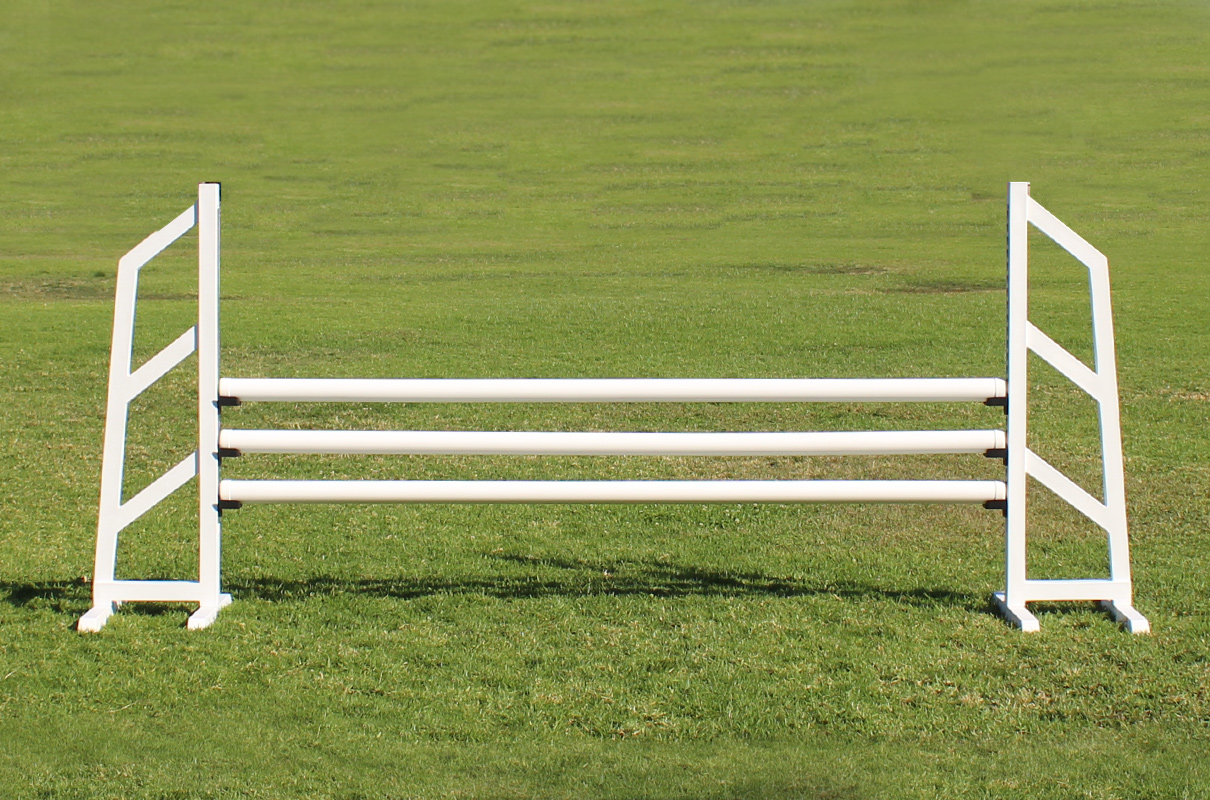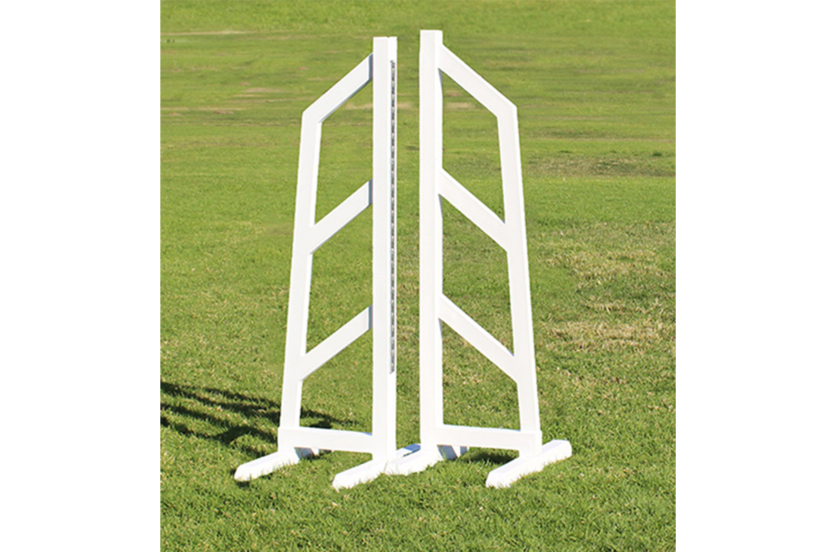 Narrow slant designed Training Standards – Skinny, are great when space is an issue. “Training Standards” won’t fade, crack or chip. Better than aluminum, because there are no dangerous metal feet. No more paint that chalks up, no more paint chipping, no dents, no re-painting or maintenance. These standards are perfect for home, the practice ring or part of your jump course. The 68″ high, hybrid size provides jumping up to 1.65 meters or over 5’3″. Includes a strong Metal Keyhole Jump Cup Track for pinless jump cups. For windy areas each foot can be filled with up to 5 pounds of sand.